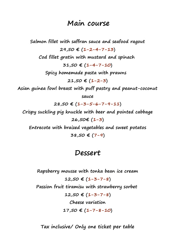 If you happen to suffer from a food intolerance, please do not hesitate to contact our staff. Thank you!